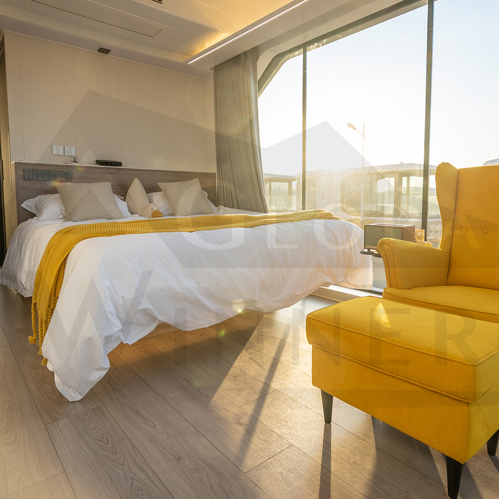 4. Mobile Eco Capsule House has the advantages of high protection, long service life, and repeated use, and its price is much lower than that of ordinary houses. Its assembly period is very short, and water and electricity can also be configured inside gas. Mobile Eco Capsule House will not generate a lot of construction waste during the assembly process, and as long as the parts are not damaged when folded and assembled, it can be recycled many times.